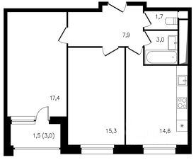 Площадь: 67.7 кв. м. Просторная кухня-гостиная (отличное место для встреч с друзьями) + 2 изолированные спальни