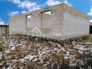 На участке стоит недостроенный дом. Залит фундамент с монолитной армированной плитой. На плите выведены под крышу стены из пеноблоков. Установлен армированный пояс. Дом - большая еврокухня и 2 изолированных комнаты, санузел, прихожая. Стройматериалы для дальнейшего строительства остаются покупателю. (пеноблоки, арматура).