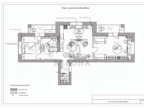 Апартаменты включают в себя 2 спальни, гостиную, кухню, гардеробную, просторный коридор, прихожую и шикарную мансарду с эксклюзивным камином.