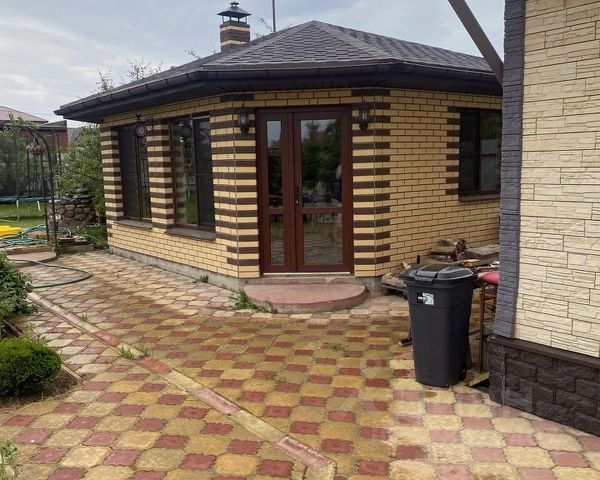 Продаётся двухэтажный с подвалом кирпичный жилой дом площадью более 183 м2, с возможностью постоянной прописки/регистрации и круглогодичного проживания. Стены снаружи облицованы керамогранитом. На всех окнах установлены деревянные и пластиковые стеклопакеты. Во всём доме полы деревянные (толщина доски 50 мм), сверху покрытые ламинатом. Кровля из оцинкованной железной черепицы, чердак над всем домом утепленный, можно использовать как кладовую. На чердак ведёт складная лестница. Фундамент ленточный бетонный, снаружи облицован природным камнем. Подвал бетонный под всем домом, теплый, сухой, высотой до 2.40см, разделён на две части. Большая его часть - под жилыми помещениями, в нём расположен котёл отопления (предусмотрено отопление газом, электричеством или твёрдым топливом) и оборудована артезианская скважина. Вход в дом через застеклённую тёплую веранду, под которой вторая часть подвала со стеллажами и полками для хранения различного инвентаря.