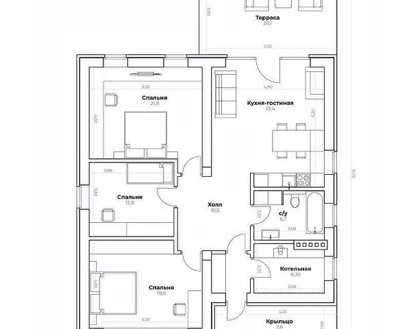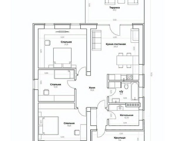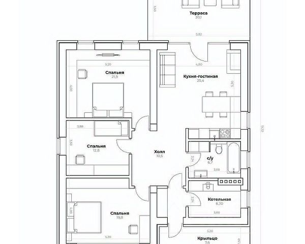 дом 140 м² в одном уровне;