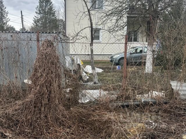(на фото видно зеленый забор - далее пустой участок и третий наш, напротив столб электричества).