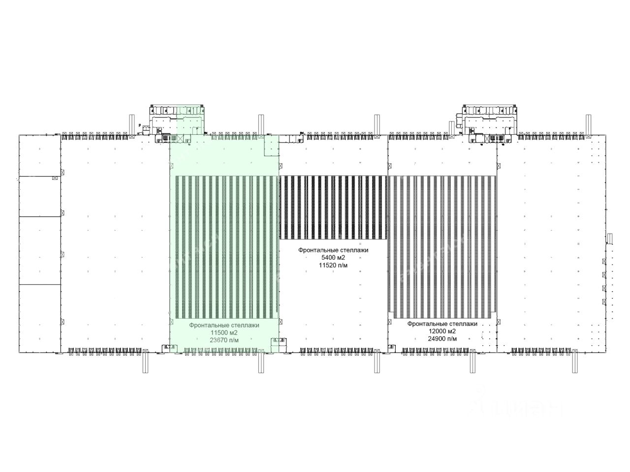 - Высота потолков: 12 м, 13 м;