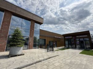 На территории строится здание 1300 м2 торгового назначения