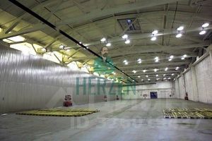 Ровный бетонный пол с антипылевым покрытием. Допустимая нагрузка на пол 6 т/м2