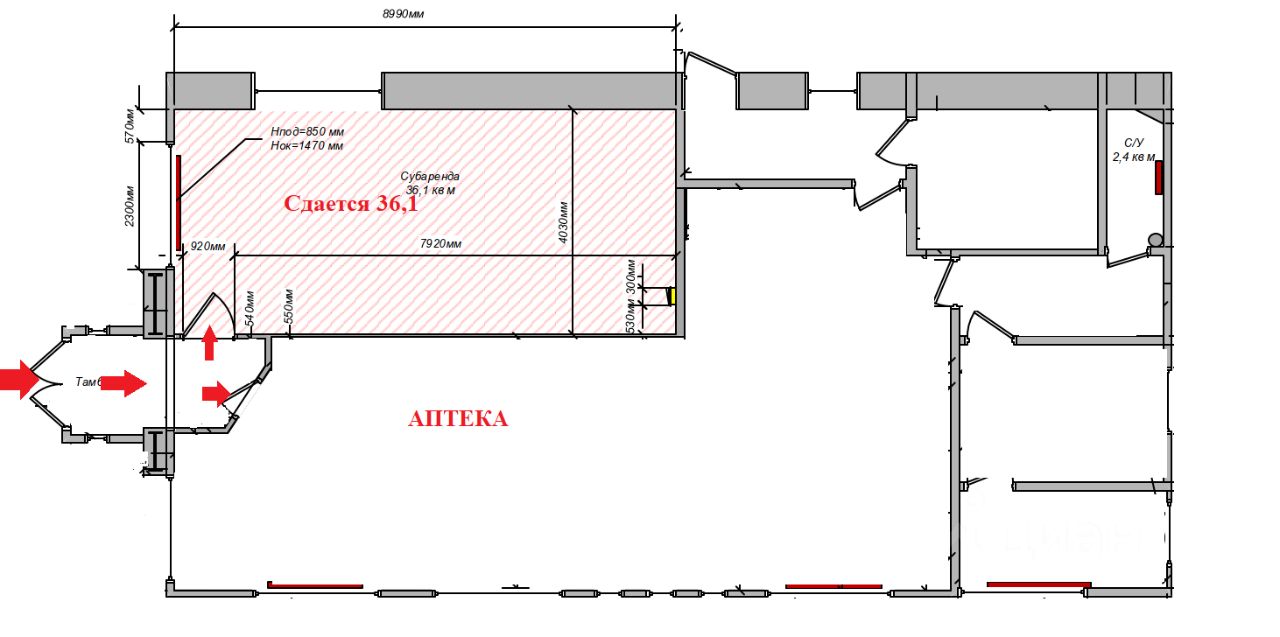 Сдается помещение площадью 36,1 кв.м. (смотрите план и фото). Вход из тамбура совместно с аптекой. В арендную плату все включено. Рассмотрим все предложения. Звонки принимаются в рабочие дни с пн-пт с 9.15 до 18.00.