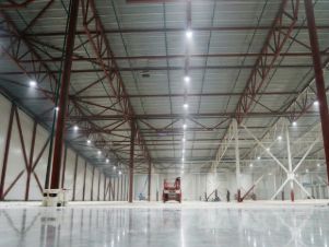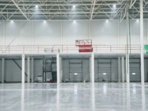 Полы: бетонные с антипылевым покрытием, допустимая нагрузка — до 9 т/м²