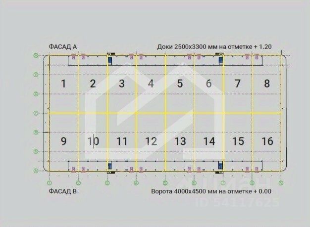 Ворота: 4 шт. доковых ворот Alutech на отметке 1.2 м и 4 шт. подъемно-секционных ворот на уровне 0 м.
