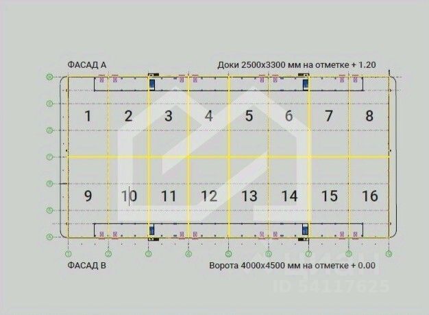 Ворота: 4 шт. доковых ворот Alutech на отметке 1.2 м и 4 шт. подъемно-секционных ворот на уровне 0 м.