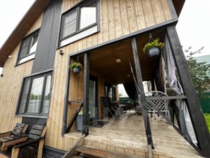 Комфортабельный , интерьерный экодом (88 кв/м ), в лесном массиве для круглогодичного проживания на закрытой, тихой территории,уединение от городской суеты, всего в 33 км от МКАД по Горьковскому, Ярославскому или Щёлковскому направлению со всеми городскими удобствами для проживания. Выполнен в современном стиле с открытой верандой 12 кв/м