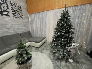 Просторная гостиная с кухонной зоной, оборудованная: электрической плитой, посудомоечной машиной, посудой, чайником, микроволновкой, холодильником, сплит системой, ТV, Wi - Fi.