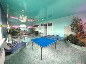 Третий этаж это игровая комната с настольным теннисом и футболом, массажное кресло для снятия усталости и уютные диваны со столом для любителей кальяна.