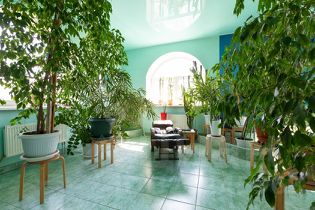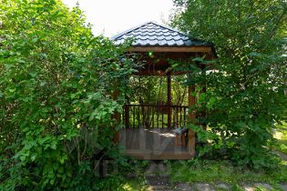 Обширная территория площадью сорок шесть соток утопает в зелени и предлагает множество возможностей для отдыха на свежем воздухе.