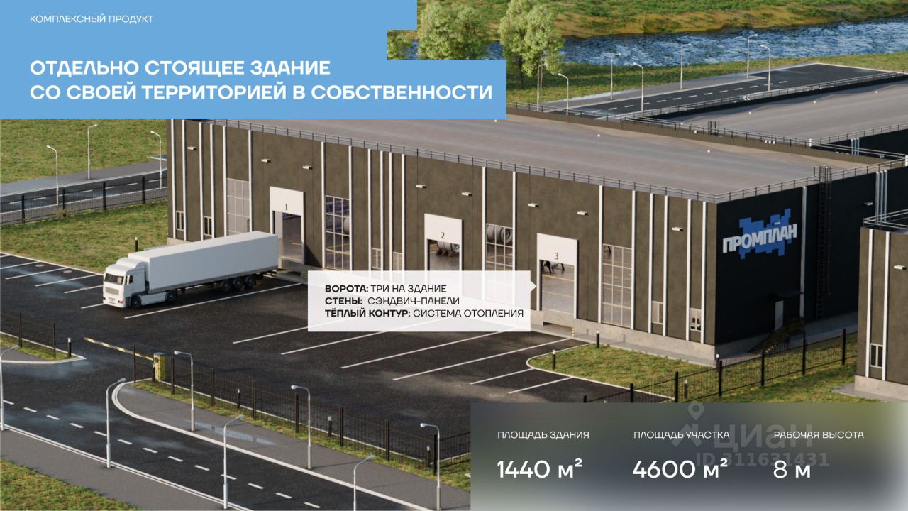 Формат объекта — Light Industrial, подходит под склад, производство, логистику, дистрибуцию, хранение товаров и размещение производственных линий.