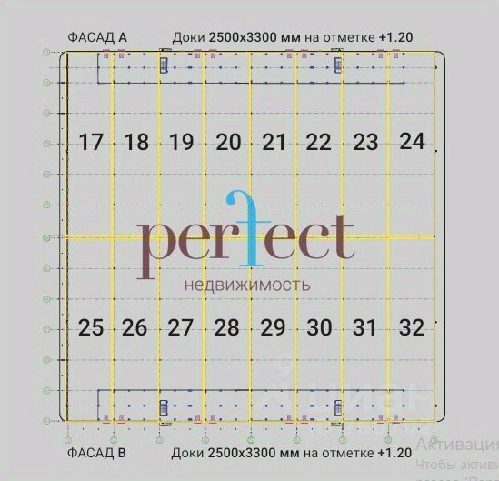 Размер мезонина: в модулях 17,24,25,32 - 6х12 м, в остальных модулях - 18х12.