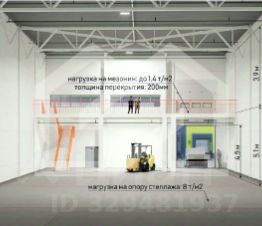 Нагрузка на пол: 8 т/м2, мезонин - до 1,4 т/м2.