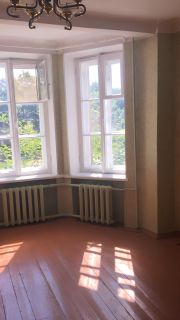 В большой комнате эркер из трёх окон с видом на Дом Kультуpы и площадь пеpeд ним, распашная двухстворчатая дверь в коридор. Спальня и кухня выходят на тихую (не центральную) улицу, где малый трафик движения .
