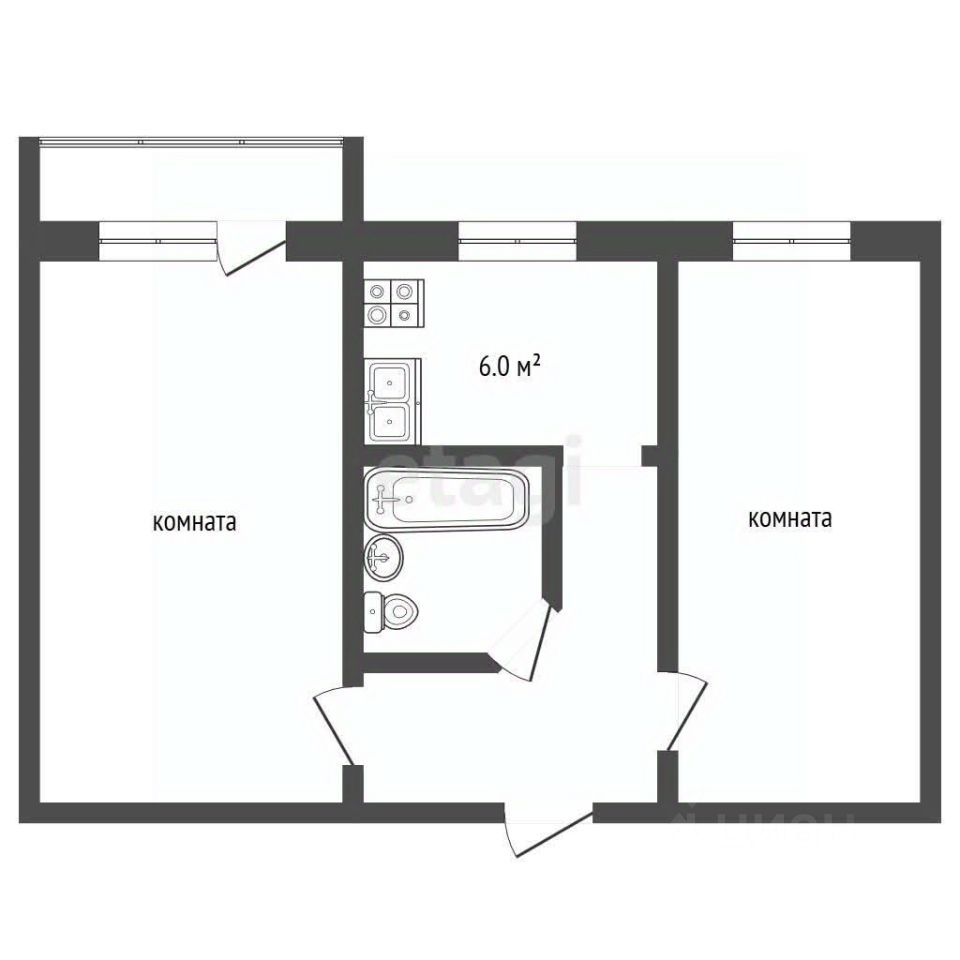 Квартира с двумя изолированными комнатами.