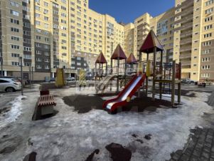 -Во дворе большая детская площадка, оборудованная различными качелями, горками и столами для игры в настольный теннис.
