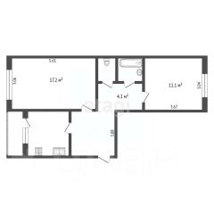 Квартира площадью 54 кв.м. - -изолированные, просторные комнаты и санузел.