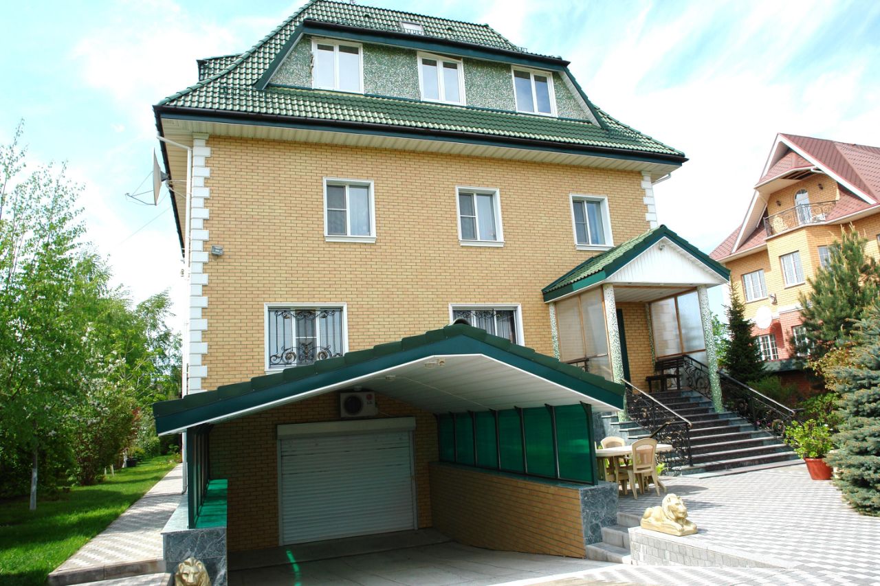 ДОМ: 4-х этажный дом 1996-2003 годов постройки площадью 425 кв.м, жилая - 250 кв.м. Цокольный этаж: гараж, котельная, сауна с комнатой отдыха, санузлом и душевой кабиной-ванной, винный погреб. 1-й этаж: холл, гостиная, кухня, столовая с лоджией, санузел. 2-й этаж: 5 спален (одна с лоджией), ванная комната с санузлом, подсобка. Между 2-м этажом и мансардой находится техэтаж 108 кв.м (в указанную площадь дома не входит). Мансарда: кабинет, бар с гостевой зоной. 2-й этаж мансарды - 56 кв.м (в указанную площадь дома не входит): домашняя церковь, посередине комнаты иконостас. Стены 1, 2 и техэтажа кирпичные. Крыша покрыта минеральной черепицей. Перекрытия над цокольным, 1 и 2 этажами - железобетонные плиты. В 2009-2010 годах осуществлен капитальный ремонт дома. В настоящее время есть необходимость провести местный косметический ремонт.