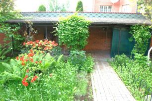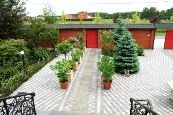 УЧАСТОК: 12 соток, прямоугольной формы, с трех сторон огорожен кирпичным 3-х метровым забором. Въезд на участок через автоматические ворота. Перед домом - площадка для 4-х гостевых автомобилей. Все дорожки, садовые постройки и периметр участка освещены.