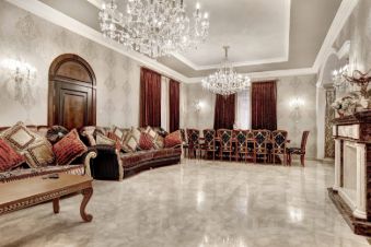 Интерьер дома выполнен в классическом стиле, отделочные материалы высокого качества, тёплые полы с напольным покрытием - итальянский мрамор, плитка и мозаика в сан узлах Итальянская, наполняет интерьер исключительно премиальная итальянская мебель и сантехника. Кованные ограждения и оконные решетки сделаны на заказ, полностью ручная работа.
