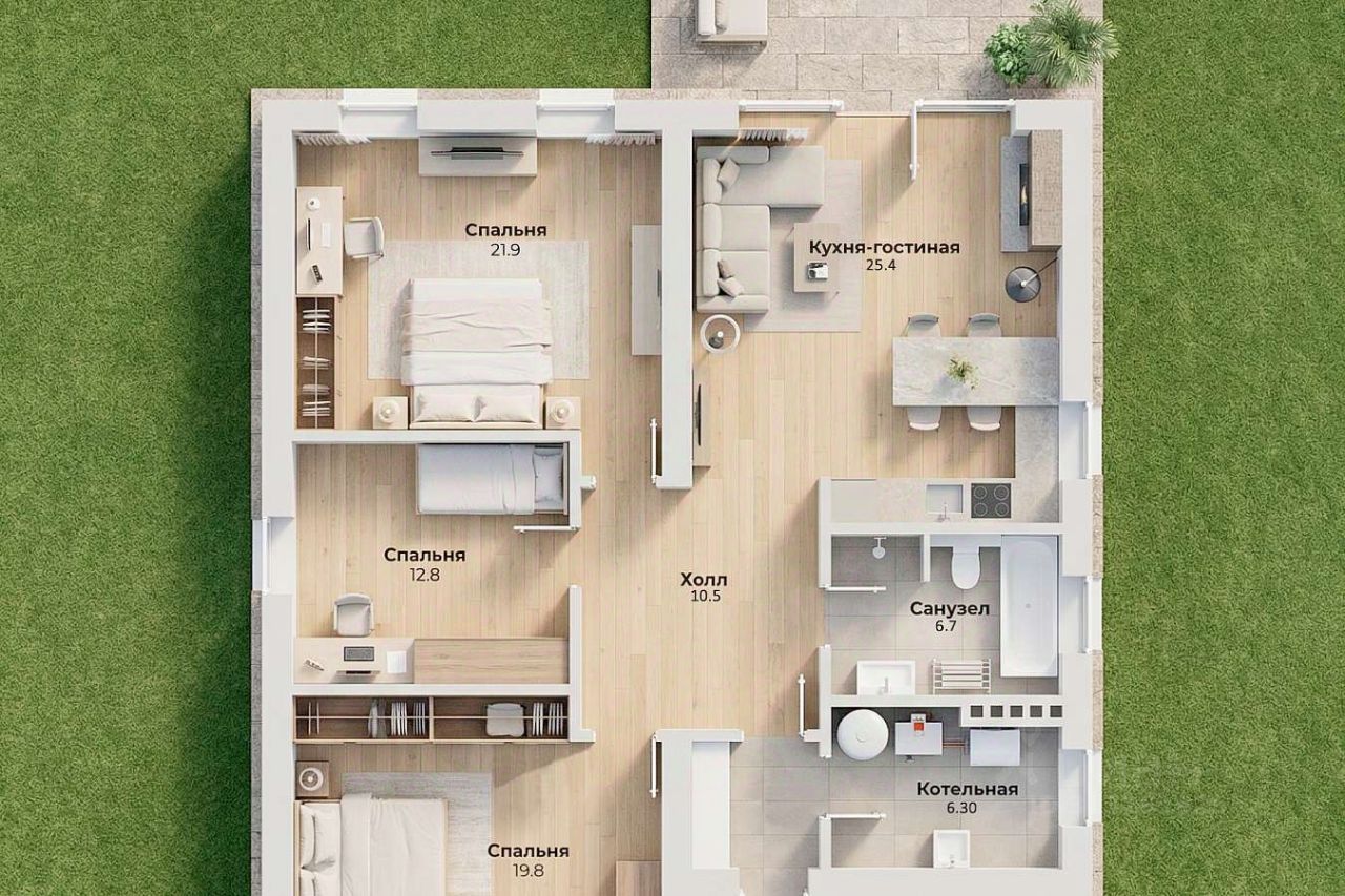 Одноэтажный дом в коттеджном посёлке Богородск Форест. Дом 140 кв.м с отделкой White-box на земельном участке 5.46 соток по современному проекту, состоит из 3 спален, просторной кухни-гостиной. Отопление и все коммуникации. В доме предусмотрена котельная для установки оборудования и стиральной машины.