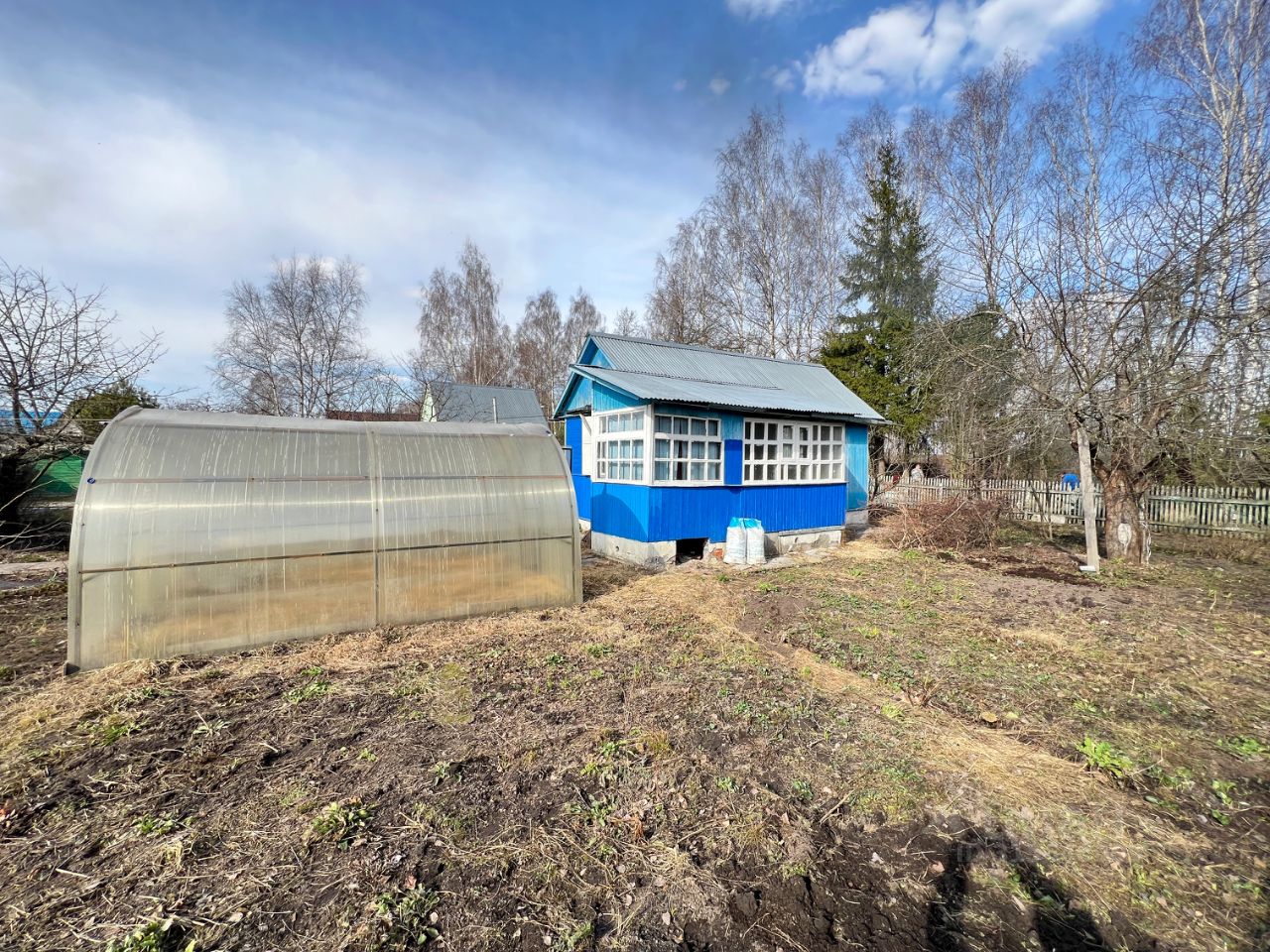 В теплице оборудованы грядки с привозным грунтом. На участке растут плодовые и ягодные растения.