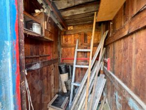 Хозблок состоит из летнего туалета, летнего душа и помещения для хранения садового инвентаря.