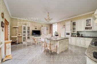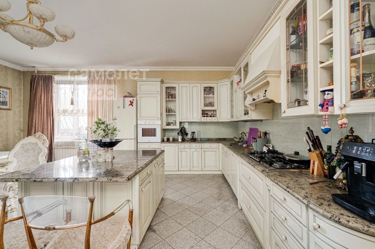 - Просторная кухня 36 м² с итальянской мебелью и мраморными поверхностями.