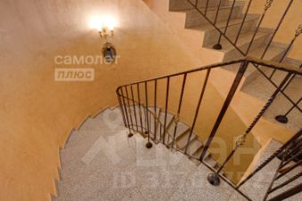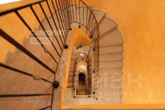 - Винтовая лестница как центральный элемент интерьера.