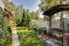 Ландшафт: Территория ухожена хвойные и декоративные кустарники, ягодные кусты, цветочные клумбы, аккуратный газон. Участок высокий, вода не стоит.