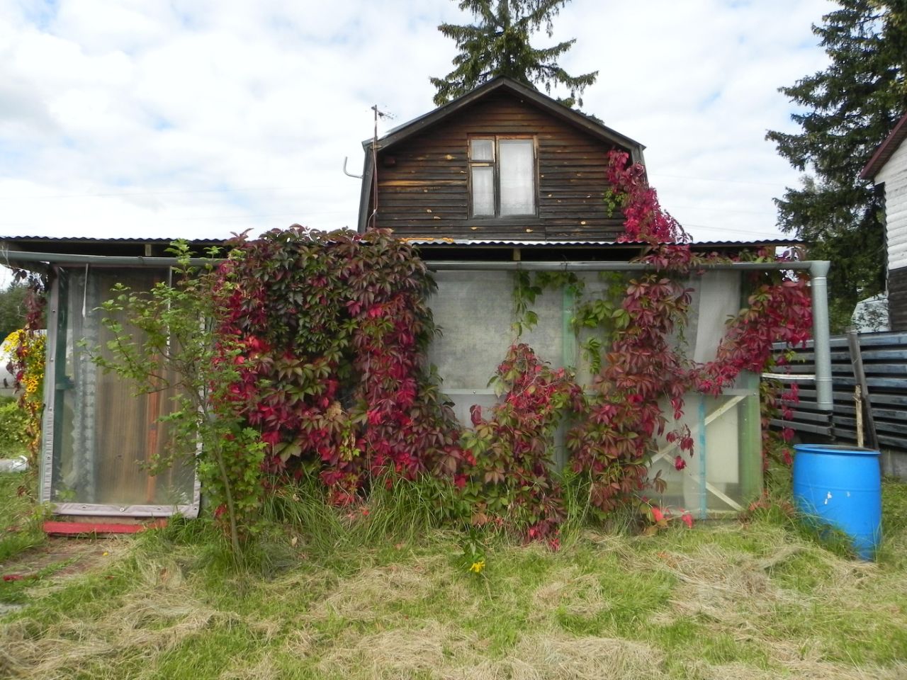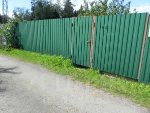 • Обжитой участок с плодовыми деревьями и кустами огорожен забором.