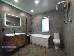 Просторный санузел 7,8м2 сделан из качественных материалов с современной сантехникой.