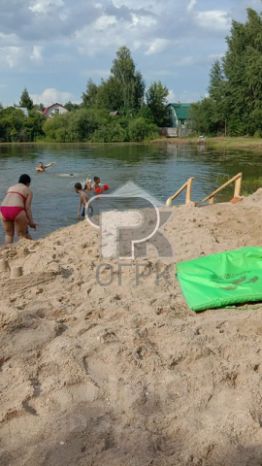Недалеко от дома, на территории СНТ есть озеро, оборудован песочный пляж, удобный спуск в воду.