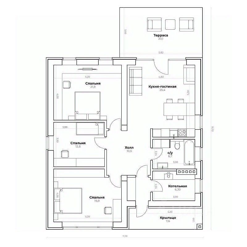 Одноэтажный дом в коттеджном посёлке Богородск Форест. Дом 140 кв.м на земельном участке 5,73 соток по современному проекту, состоит из 3 спален, просторной кухни-гостиной. Отопление и все коммуникации, сделана разводка розеток и света. В доме предусмотрена котельная для установки оборудования и стиральной машины.