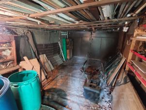 На участке также находятся: строение с баней, теплым строением с кухней и комнатой отдыха с кирпичной печкой; туалет; хозяйственное строение; железный гараж; колодец; теплица.