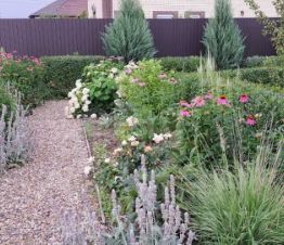 Дорожки на участке выложены тротуарной плиткой, территория ухожена, включает ландшафтный дизайн и плодовый сад.
