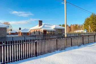 К дому уже подключены коммуникации: электричество (15 кВт), водопровод скважина, канализация септик. По фасаду участка - евроштакетник в единой стилистике коттеджного посёлка.