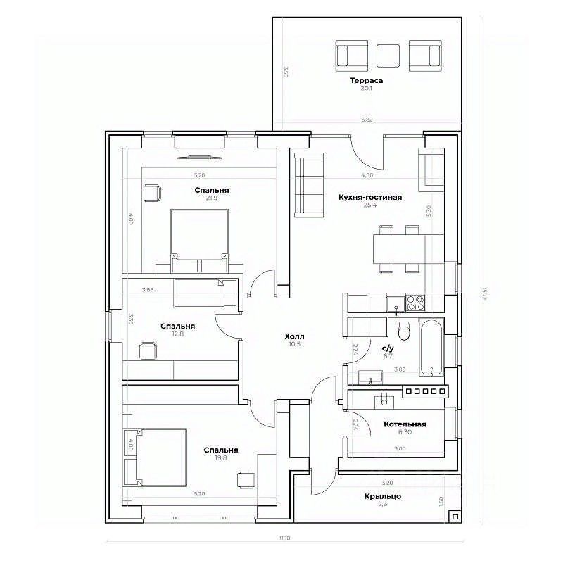 Дом 140 кв.м из 3 спален, просторной кухни-гостиной