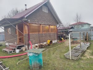 Небольшой домик со всеми удобствами,2 комнаты,кухня,с/узел,душ,бойлер для горячей воды,отапливается конвекторами,можно жить строителям.Участок выровненный,подготовлен под строительство дома.