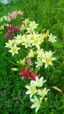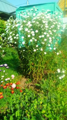 Также есть декоративные растения:спирея (белая невеста), туя (шаровидная) и очень много цветов.