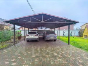 Крытая парковка на 4 машины. Все дорожки на участке выложены тротуарной плиткой.