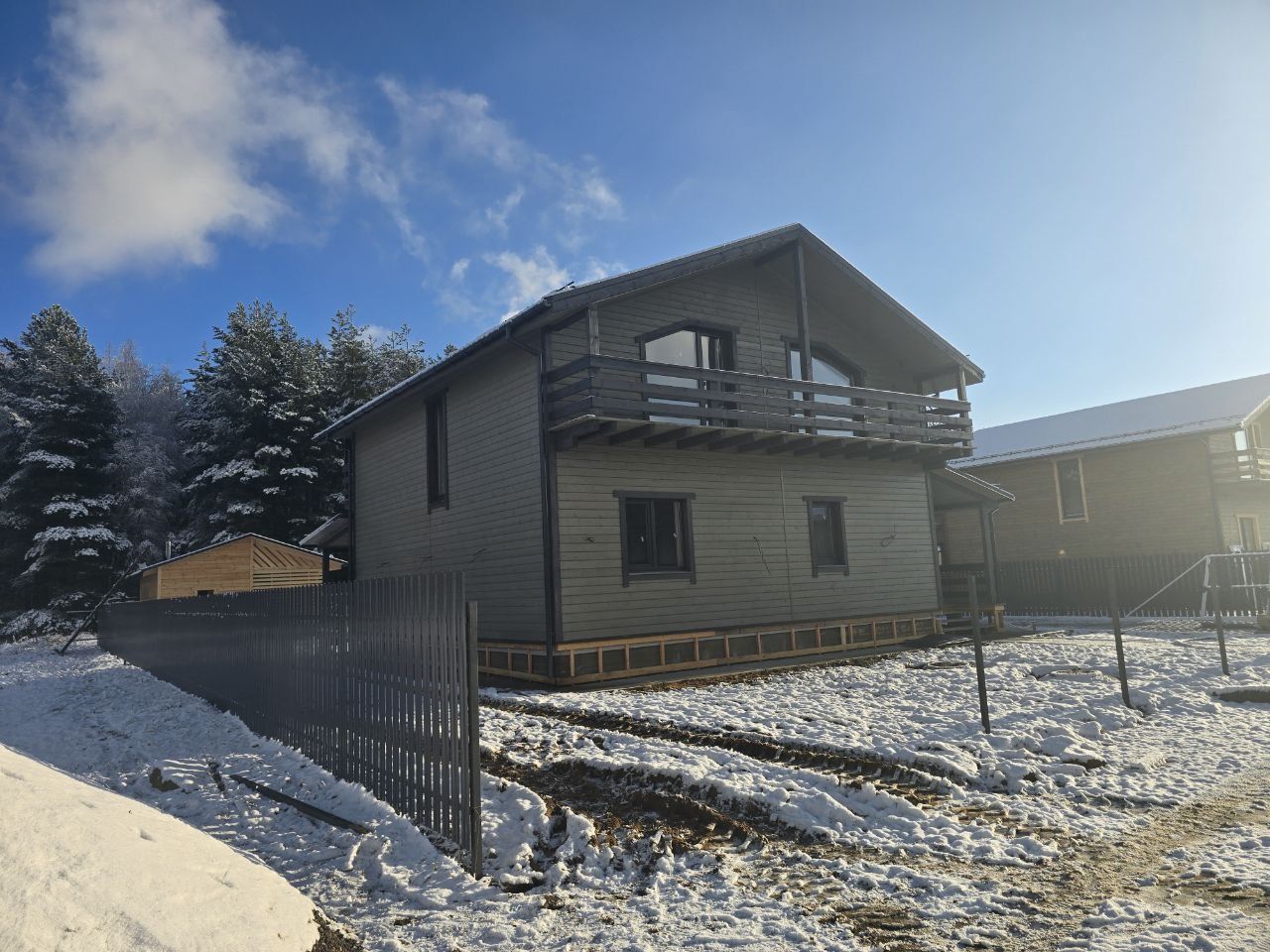 Дом построен из Бруса , фундамент- монолитная плита, крыша- металлочерепица. Окна : 2-х камерный стеклопакет с функцией энергосбережения. Внутренняя и внешняя отделка выполнена из имитации бруса. Дом выкрашен качественной краской с высокой степенью защиты дерева. В доме на первом этаже установлен теплый водяной пол. Септик, скважина, отопление, все готово к проживанию. Участок огорожен.