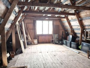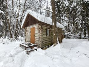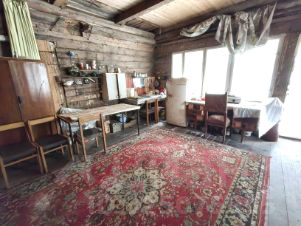 Дом из бревна 45м2 на границе с лесом, вдалеке от суеты. Дом построен в 90х годах. Фундамент блоки ФБС и кирпич. Высокий цокольный этаж из кирпича, где ранее был гараж. Большая сварная лестница ведёт на первый этаж дома. Планировка простая, в срубе на первом этаже сделаны 2 комнаты: большая 20м2 - она же и кухня и небольшая спальня. Окна деревянные, двойные. Второй этаж-большая мансардная комната. Франтоны достщатые, крыша не течёт. На участке есть БАНЬКА, полы требуют ремонта. Домом долгое время не пользовались, но участок в хорошем состоянии, ровный. Участок 6.5 соток, немного влажный из-за близости родниковой зоны и леса. Воды на участке нет, в 3х минутах родник с питьевой чистой водой. Электричество подключено.