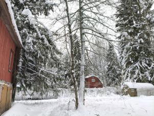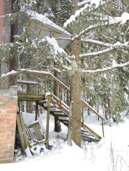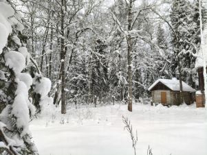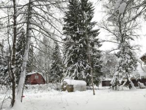 Место в лесной зоне, вокруг растут огромные ели, сосны, березы. Центральная часть участка свободная.