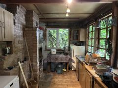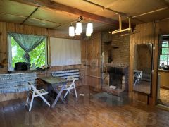 —Цокольный этаж: капитальный гараж, ворота на лебедке, проведена вода. Первый этаж: кухня и санузел, гостиная с камином, лестница на второй этаж. Второй этаж: лоджия, две раздельные комнаты.