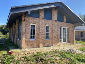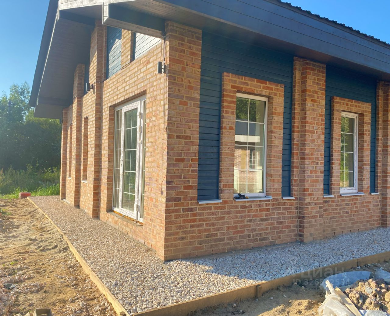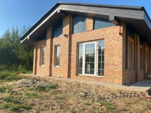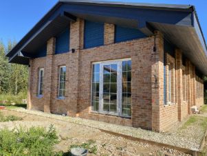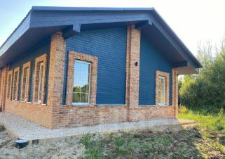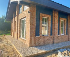 •Стены - газобетон Bonolit, утепленный по контуру и отделанный кирпичной кладкой из фасадного кирпича.