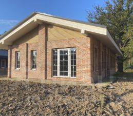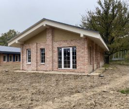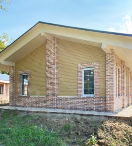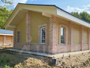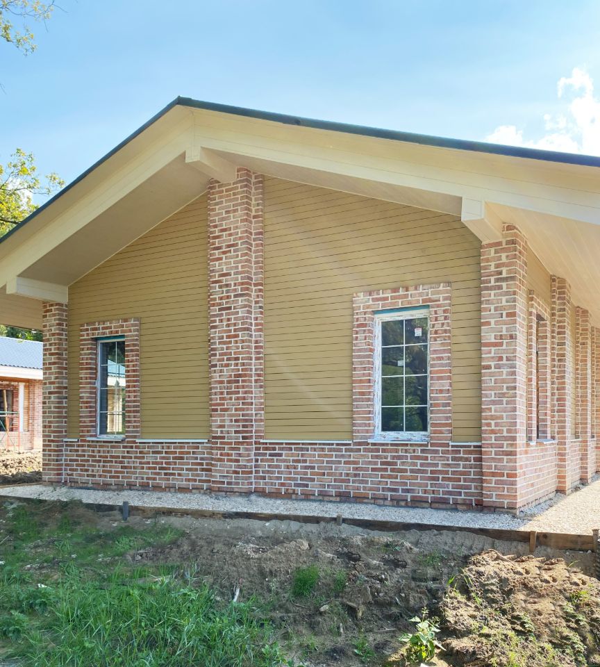 •Стены - газобетон Bonolit, утепленный по контуру и отделанный кирпичной кладкой из фасадного кирпича.